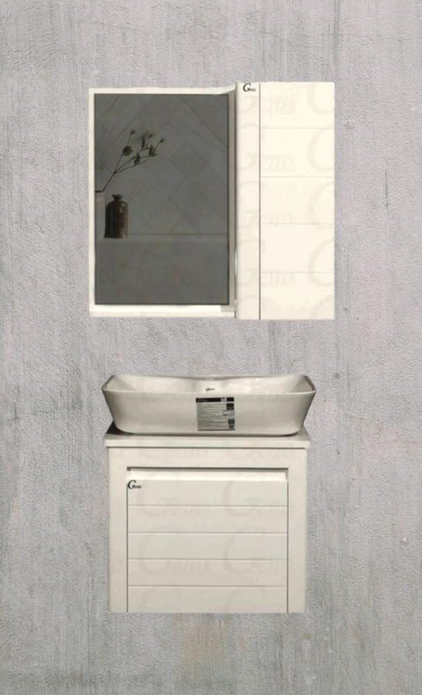 کابینت روشویی PVC ضد آب + آینه تاچ LED | روشویی سرامیکی