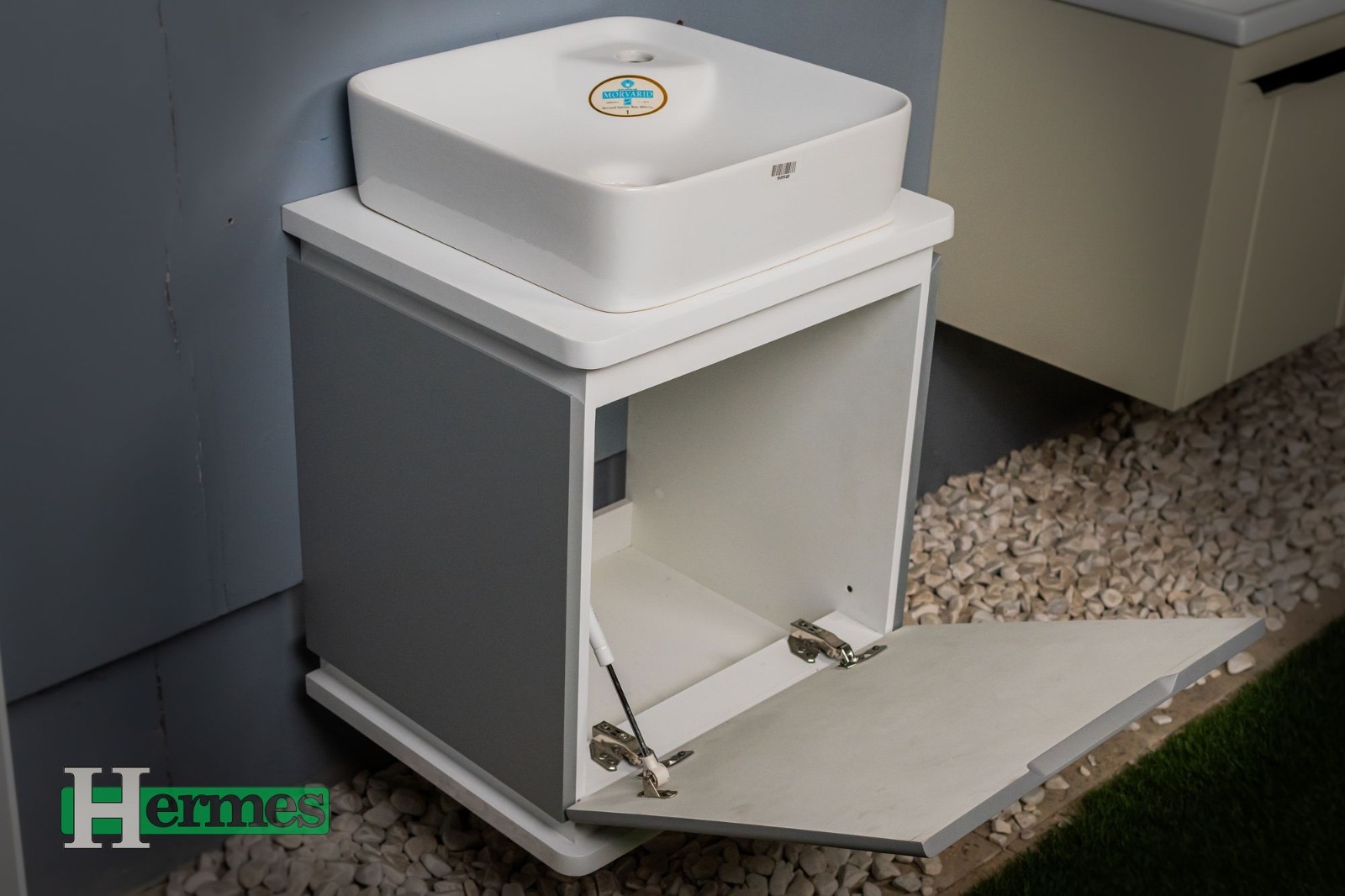 روشویی کابینتی سایز بزرگ نسکافه ایی و سفید مدل آکروپل