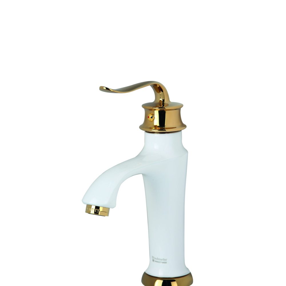 شیر روشویی پایه بلند شادمهر مدل کوریو سفید طلا