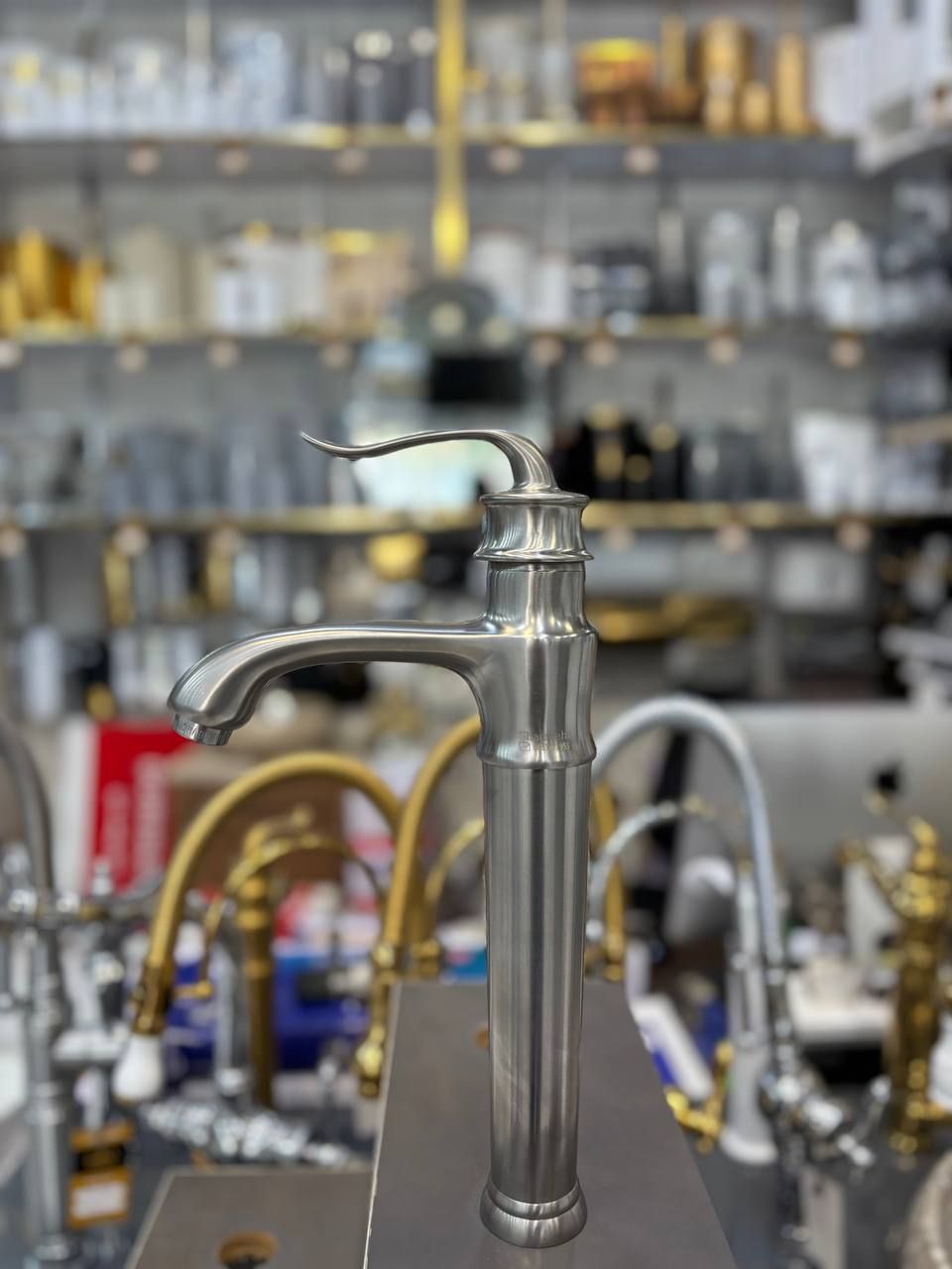 شیر روشویی پایه بلند شادمهر مدل کوریو استیل مات