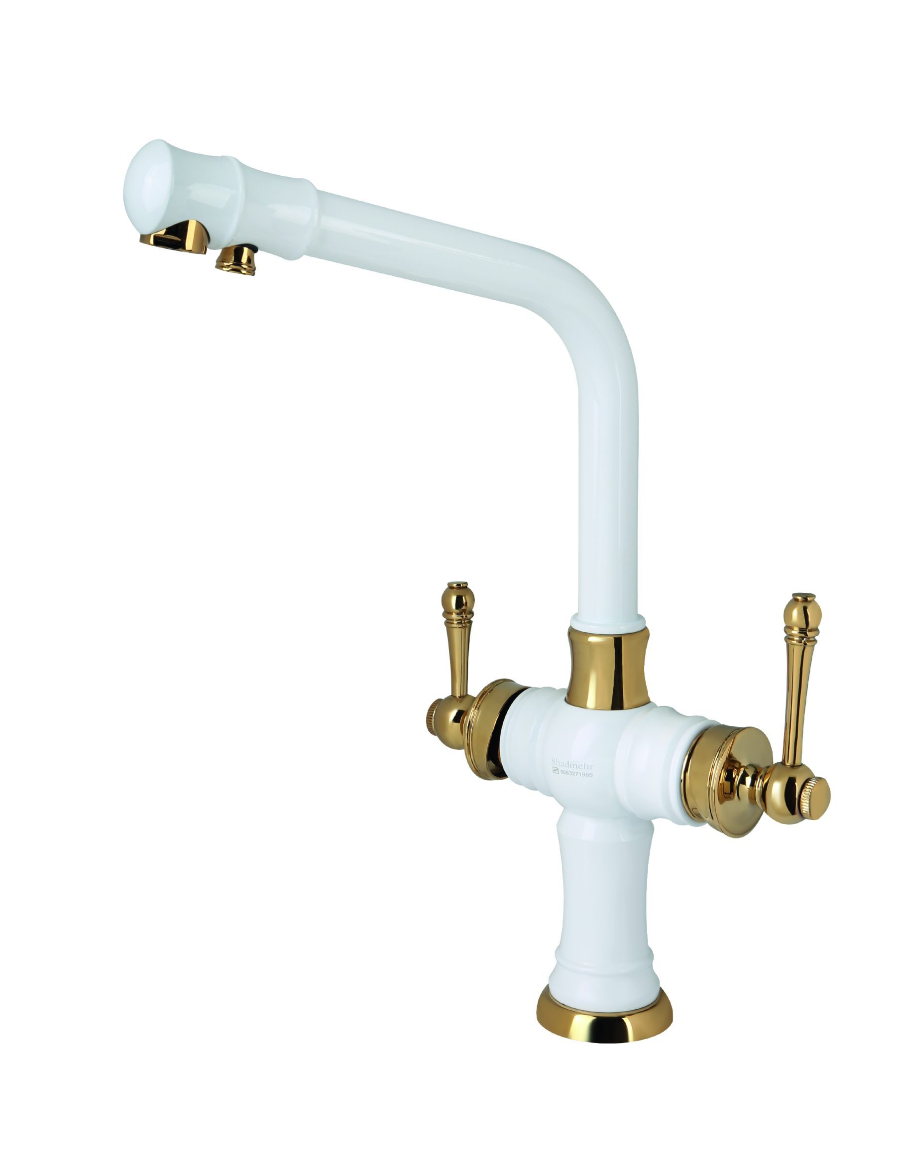 شیر ظرفشویی دوکاره تسویه دار باردو سفید طلا