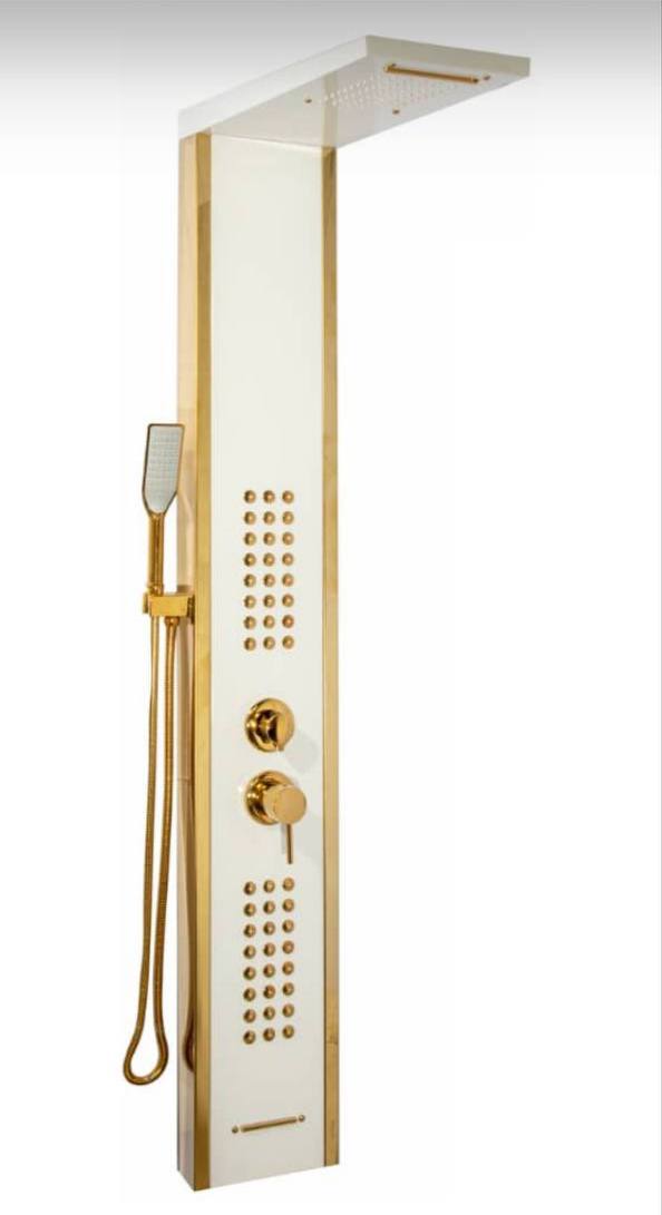 پنل دوش حمام 5 حالته ساخته شده از استیل ۳۰۴ دارای دوش بالا ، دوش دستی ، ماساژور (دیواری) و وان پر کن می باشد. پنل دوش 5 حالته به علت امکانات و زیبایی بیشتر به نسبت دوش های ساده ؛ گسترش پیدا کرده است . خروجی و شیر مخلوط اهرمی ؛ استفاده بدنه این محصول از جنس استیل مرغوب 304 در ۱۰رنگ سفید ؛ نقره ای مات ؛ طلایی براق و طلایی مات و ….. می باشد. پنل دوش به علت در معرض بودن با آب ؛ از بهترین نوع استیل با کد 304 استفاده شده است که در رنگبندی مخلتف جهت هماهنگ کردن با محیط حمام تولید شده است.