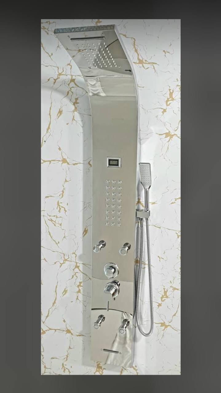 پنل دوش حمام ساخته شده از استیل ۳۰۴ دارای دوش بالا ، دوش دستی ، ماساژور (دیواری) و وان پر کن می باشد. پنل دوش به علت امکانات و زیبایی بیشتر به نسبت دوش های ساده ؛ گسترش پیدا کرده است . خروجی و شیر مخلوط اهرمی ؛ استفاده بدنه این محصول از جنس استیل مرغوب 304 در۱۰ رنگ سفید ؛ نقره ای مات ؛ طلایی براق و طلایی مات و ….. می باشد. پنل دوش به علت در معرض بودن با آب ؛ از بهترین نوع استیل با کد 304 استفاده شده است که در رنگبندی مخلتف جهت هماهنگ کردن با محیط حمام تولید شده است.