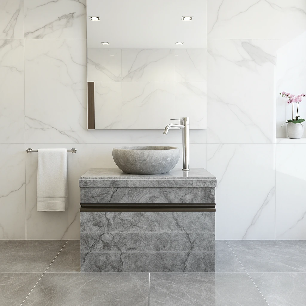 کابینت روشویی سنگی سایز ۶۰ طوسی مدل مارین